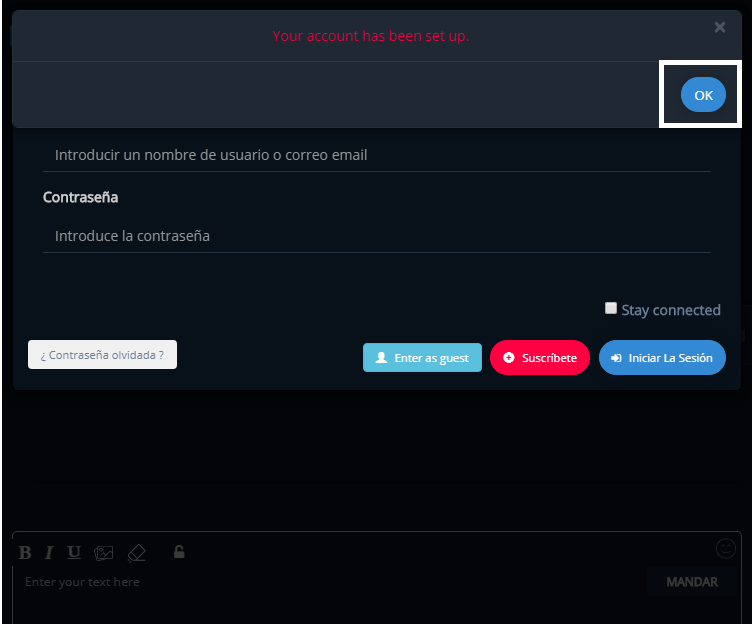 Con eso se darán de alta, ni siquiera tienen que confirmar el correo. Después deben darle al botón “OK” o a la “x” para quitar ese anuncio